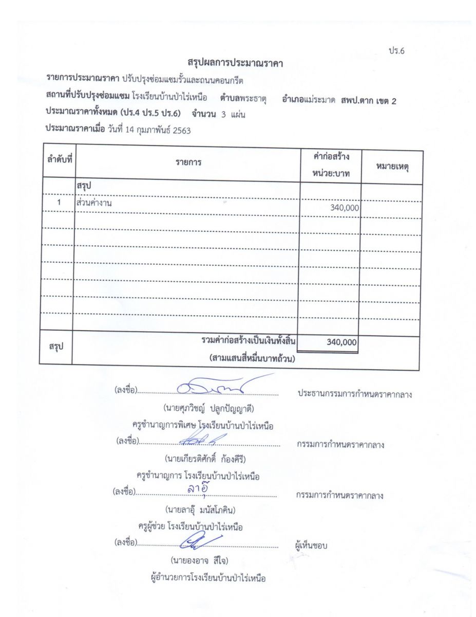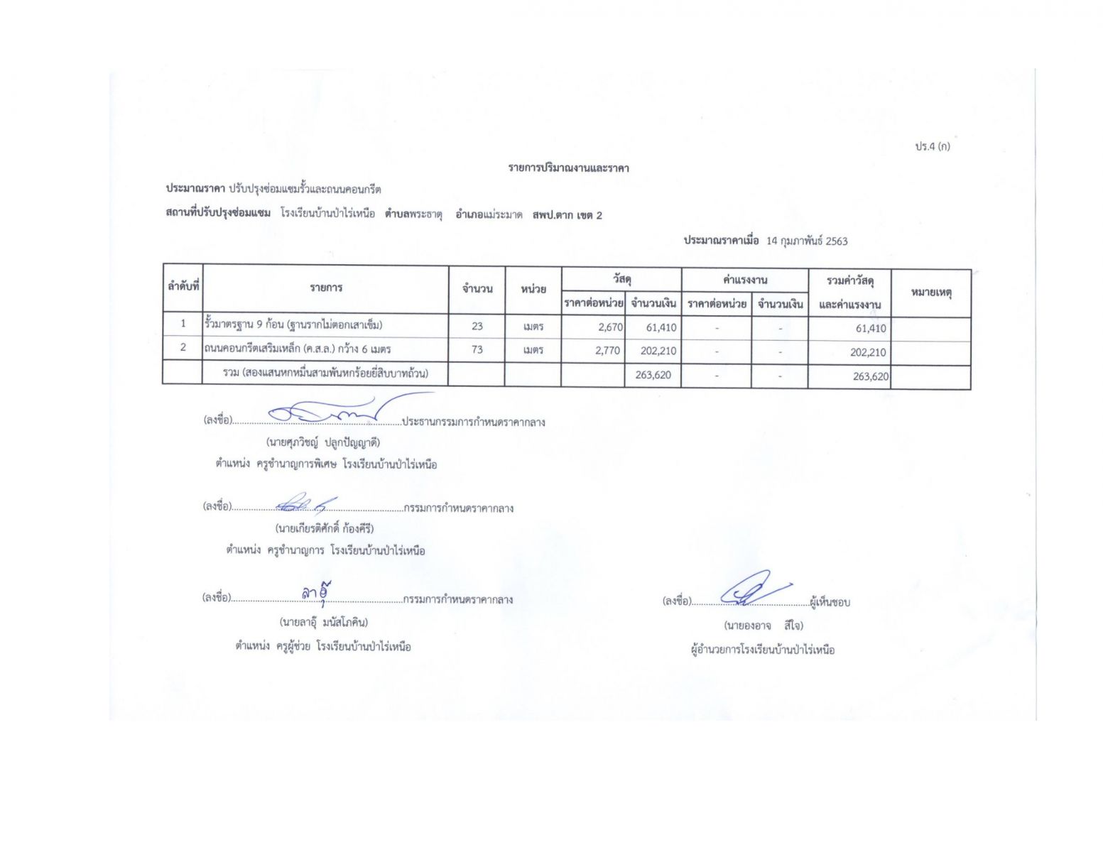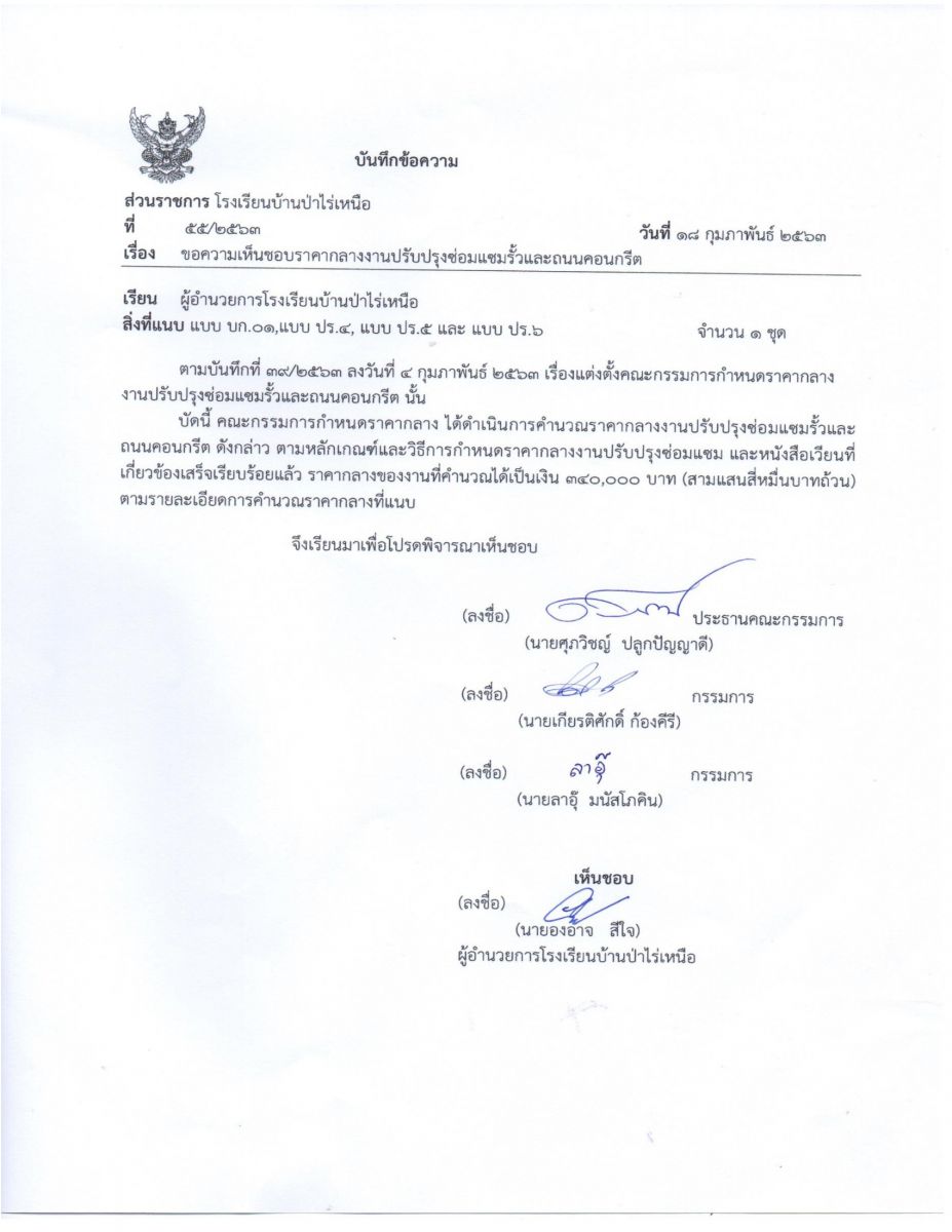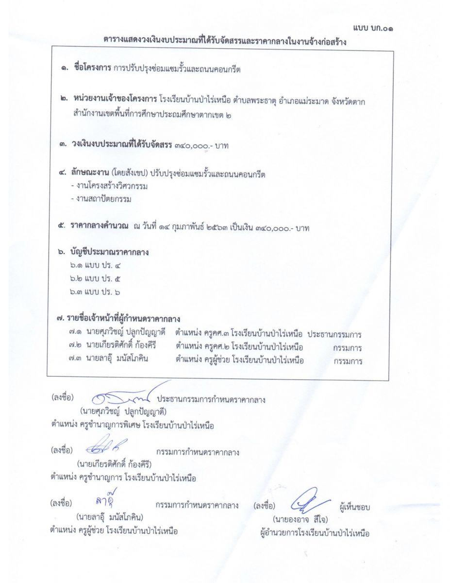 ประกาศใช้ราคากลางการปรับปรุงซ่อมเเซมรั้วและถนนคอนกรีต