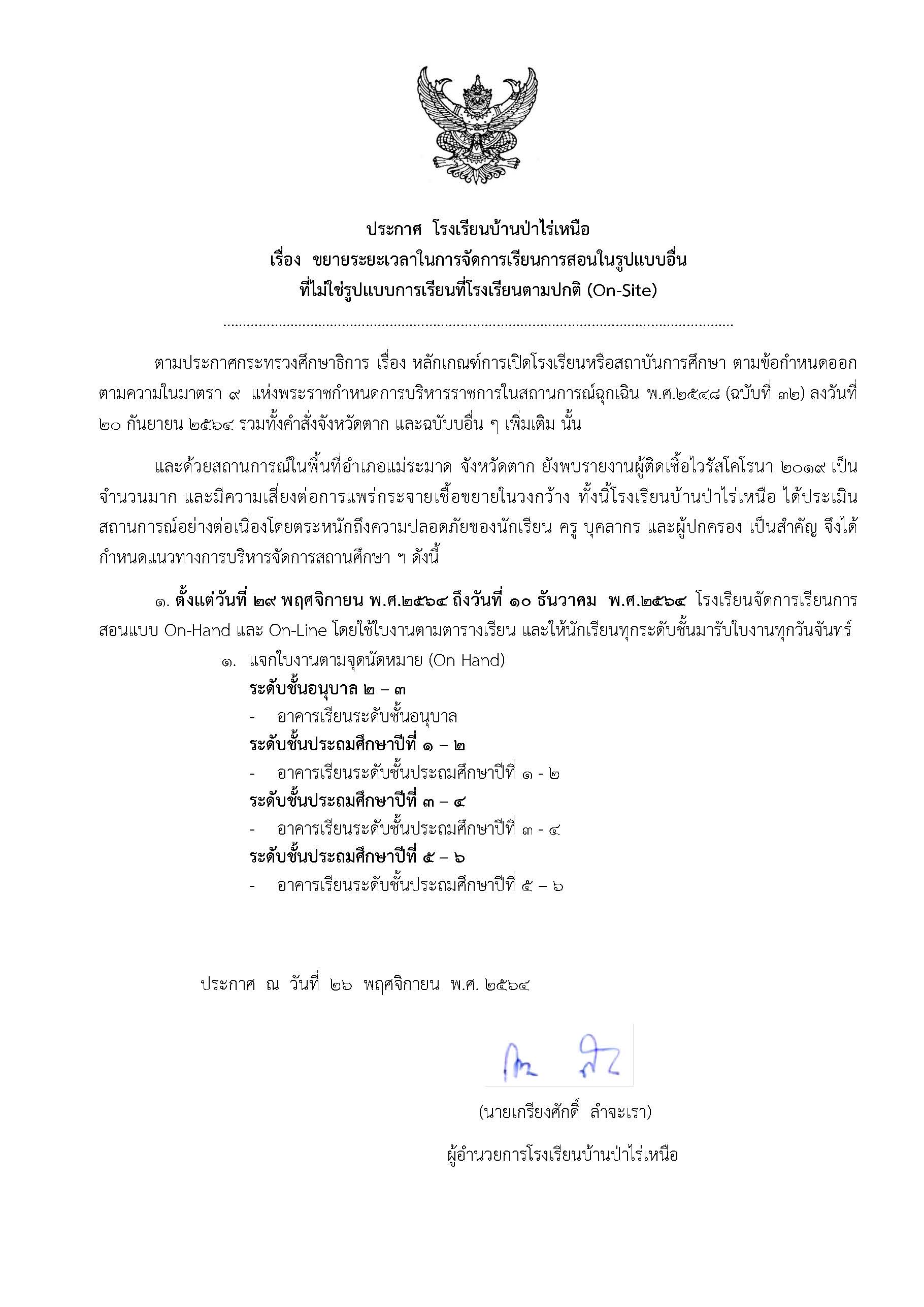 ขยายเวลาการจัดการเรียนการสอนรูปแบบOn-Hand